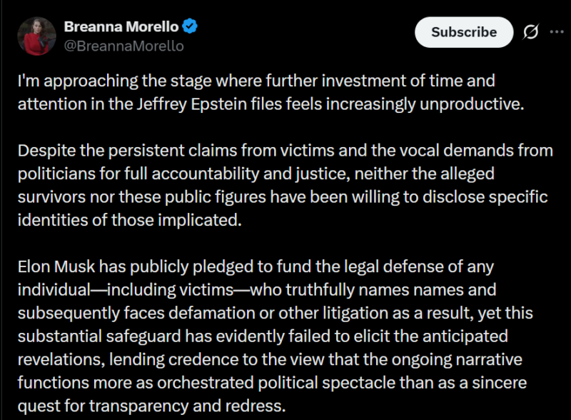He acknowledges that as true and then immediately shifts focus back to “another document” he “found” listing wexner as co conspirator to child sex trafficking.