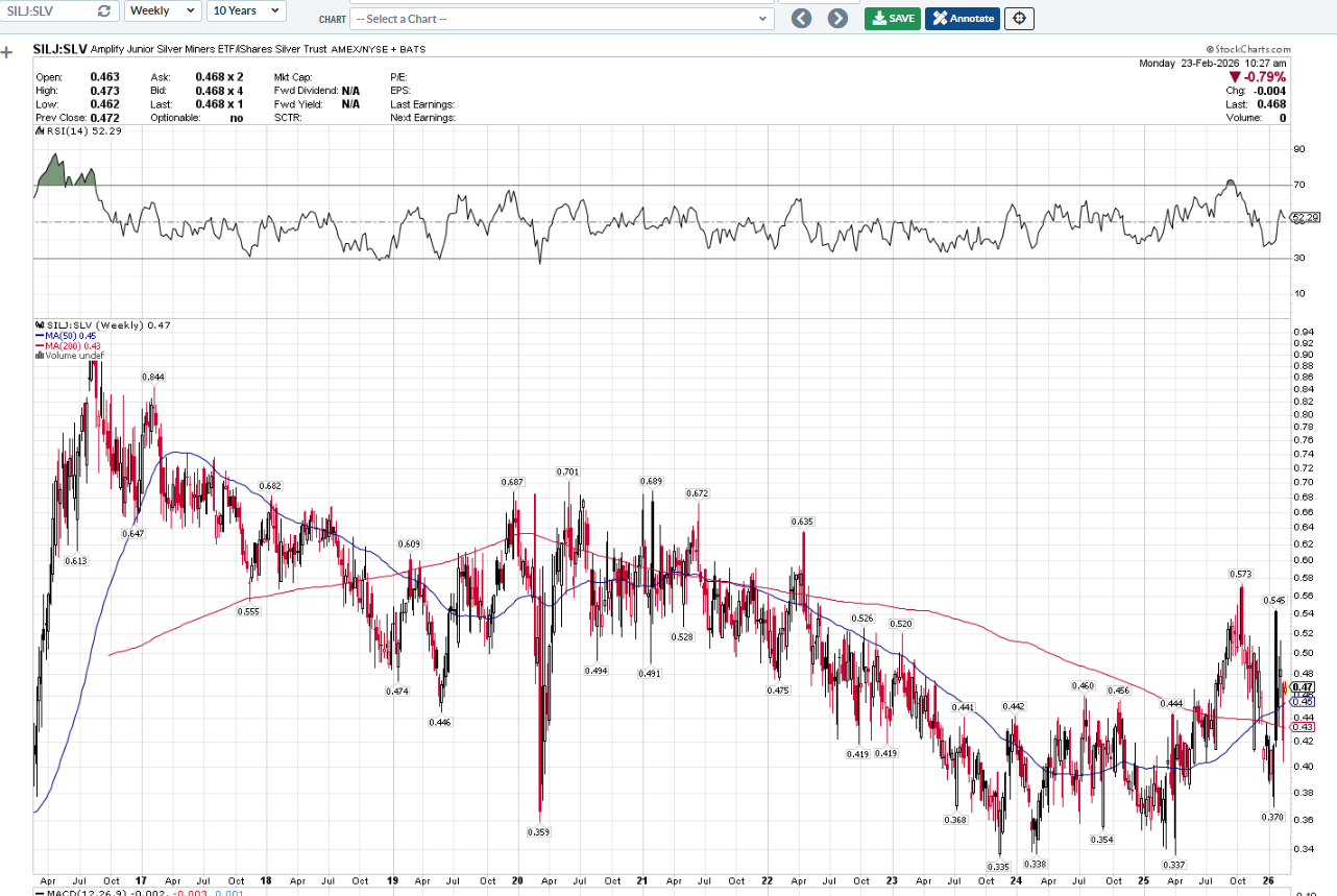 Silver stocks have really just started climbing out of the basement. Can you imagine what they might do if silver breaks back to it’s all time high in triple digits?