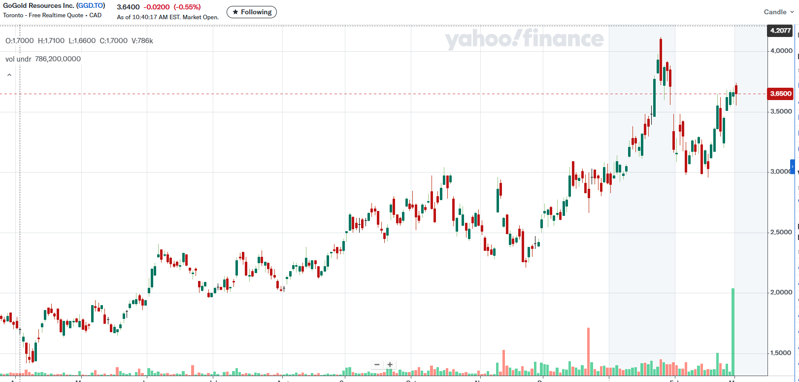 I just bought 9000 shares….will buy more if the price action breaks above 95 cents. Stop at 71 cents.