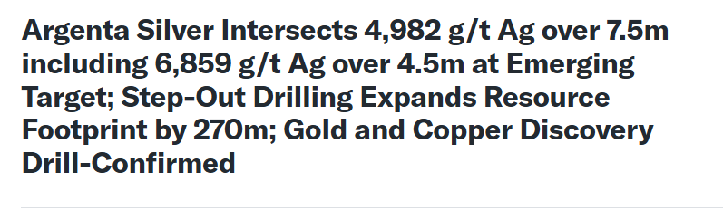 It’s only 280 million market cap, Argentina is county (lower risk), 320 million share o/s, and Frank Guistra, whose name I’ve seen a lot in successful ventures in the PM space. And 45 million in indicated at over 400 grams per tonne. I think it’s definitely a good speculative bet as they aren’t going to be mining any time soon. This is one where they will drill with the intent of having a major take them over. Not sure, and havent’t done the research to see if any mining majors are already in that area. Probably, but not sure.