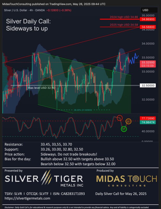 -> Posted by Midas Touch @ 6:00 am on May 26, 2025 Comments Off on Silver Daily Call for May 26th, 2025