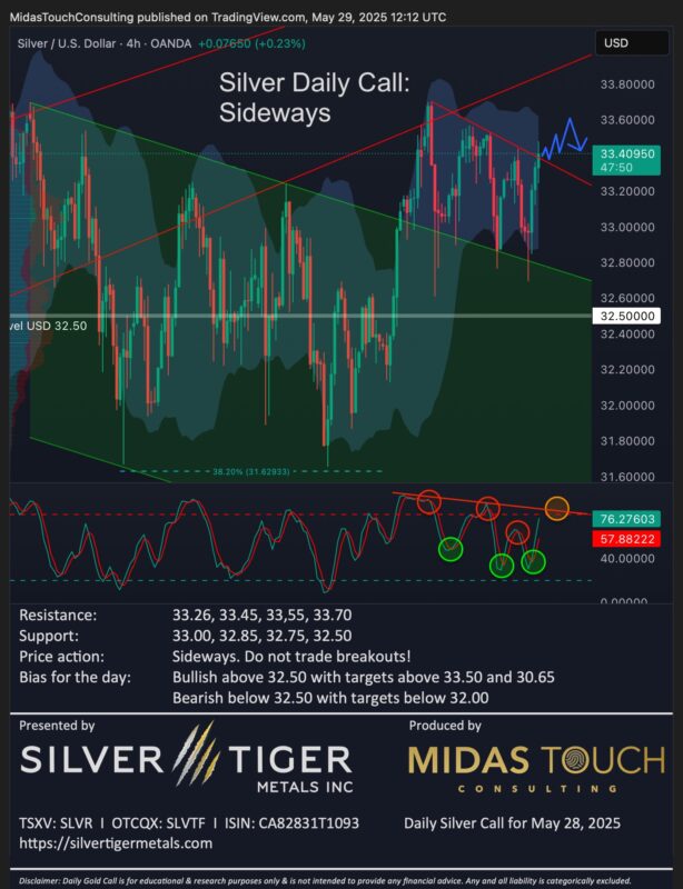 -> Posted by Midas Touch @ 8:20 am on May 29, 2025 Comments Off on Silver Daily Call for May 29th, 2025