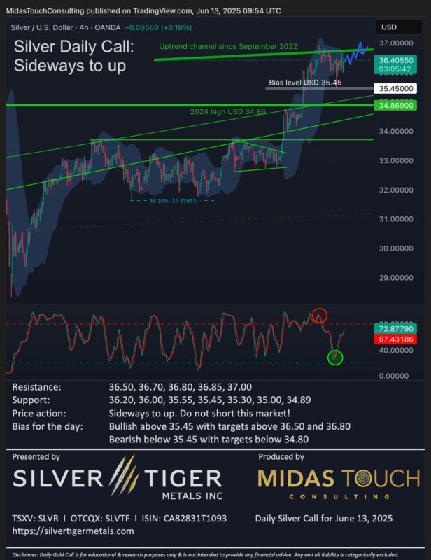 -> Posted by Midas Touch @ 6:02 am on June 13, 2025 Comments Off on Silver Daily Call for June 13th, 2025