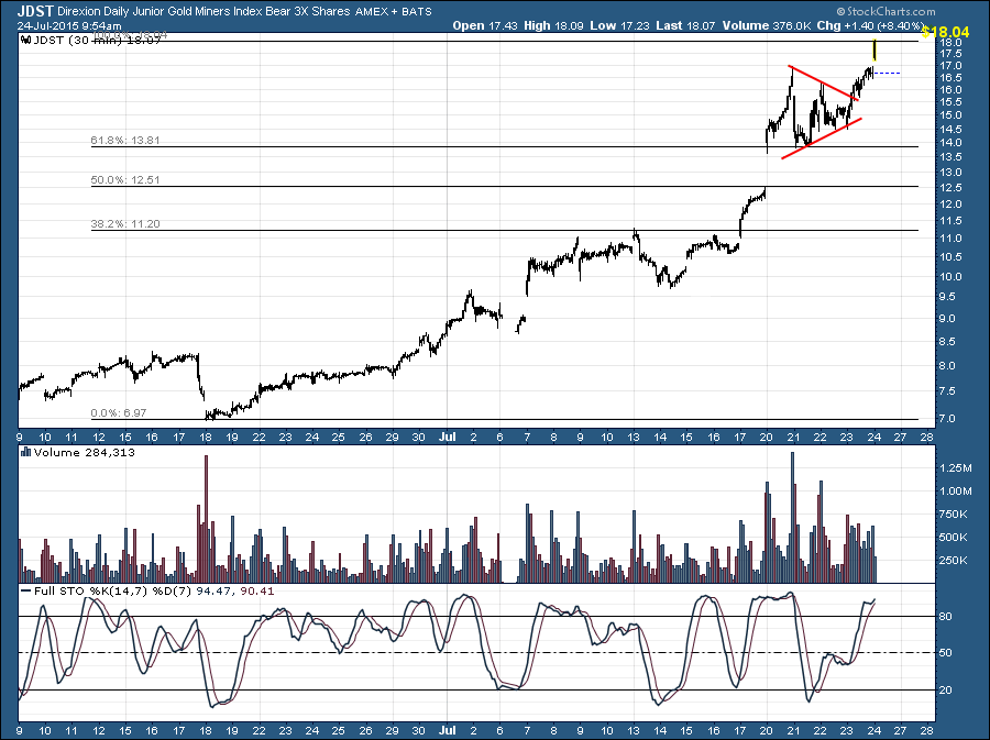 I know I said I wouldn’t try to trade a counter trend move but it was a bit too tempting when JDST hit my target. I bought a small JNUG position at 6.92 just to test my premise. No big stakes here….more of an experiment 😉