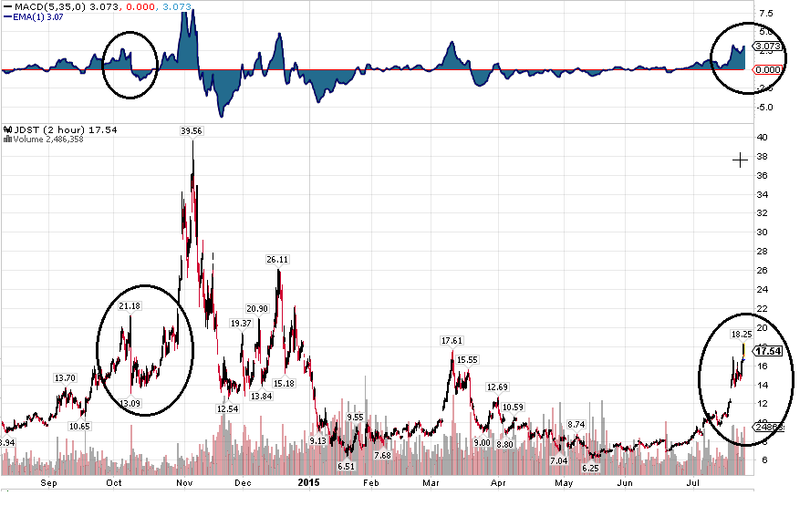 Eagle… a pullback to the 10.84 area would be counter to my EW count meaning that for the current count the more likely pullback would be to the 13 dollar area… My EW count calls for two more wave 4’s. The last wave 4 being of higher degree could make it to 10.84 area… Counts can be wrong but this fractal is compelling!!! But we have two target to watch for… Indicators will tell us when to pull the plug if you’re trading it…Also what we have to watch for is the consolidation on NUGT right now… if it keeps consolidating it would favor more downside…I’m also watchin JDST closely… really not a clean count for the (v) of 3 but more upside could turn the EWO against us and mean higher highs (slow grind) for JDST… Basically I’m guarded bullish right now… charts have to show me more….