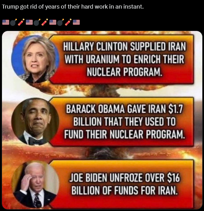 What Trump has to do is convince MAGA the bombing was in the interest of the US and the world in general and not (just) at the behest of Israel. The LEFT is going to exploit the latter to the n’th degree, simply to sow division.