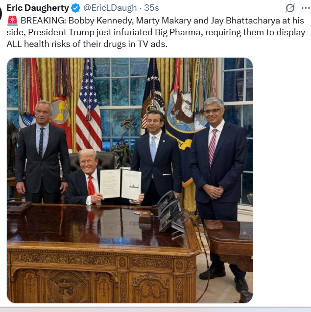 BREAKING: President Trump just signed a memorandum REQUIRING Big Pharma to put all HEALTH RISKS on their ads.