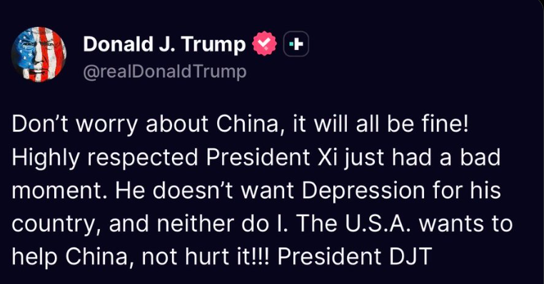 BREAKING: Vice President JD Vance continues de-escalation with China following China’s clarifying statement last night.
