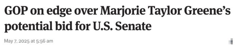 I’m paraphrasing, but here’s the picture that CNN anchor Scott Jennings painted. After Trump was re-elected last year, MTG wanted to upgrade herself to a Georgia Senate seat. She probably felt she’d earned it. But, according to Scott, President Trump “sent her a poll privately, discreetly, and it showed her down 20 points to Sen. Jon Ossoff (D-Ga.).”