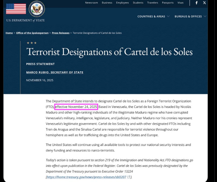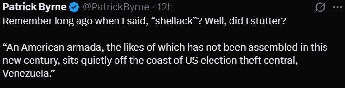 My proof? Venezuela is now surrounded by American warships.