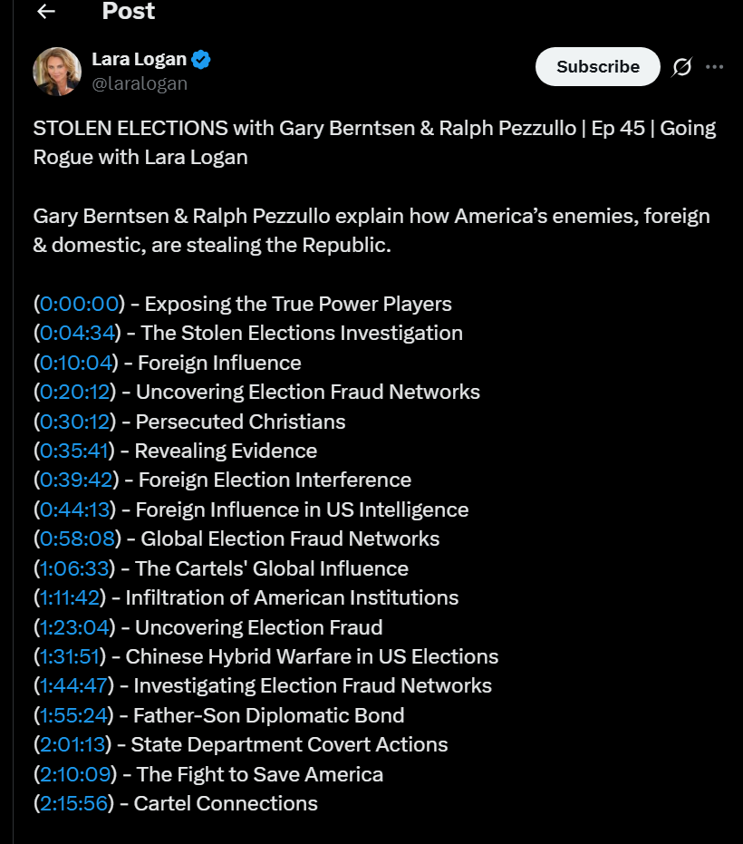So FGC, as I am sure you will agree, This IS the MOST IMPORTANT STORY in at least 100 years. Most of us here and many others knew the 2020 election was rigged. However because the Uniparty didn’t want the general public to know and that is why the MSM will not cover this until they have to.(Not sure when that will be.) The TENT is great and you are doing a fantastic job but how do we get this out to everyone(especially in the US) because if it gets widely disseminated with ALL the documentation and proof the GOP will be able to remain in control in 2026 and make sure the DEMS are destroyed and cease to exist as a viable political party.(Unfortunately it should have been discredited long before this but better late than never.)