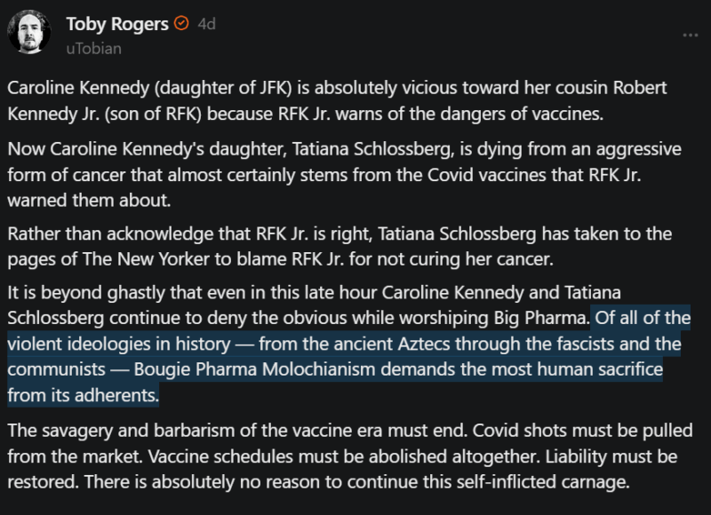 Of all of the violent ideologies in history — from the ancient Aztecs through the fascists and the communists — Bougie Pharma Molochianism demands the most human sacrifice from its adherents.
