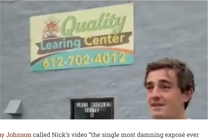 In his latest investigative video, titled, “I Investigated Minnesota’s Billion Dollar Fraud Scandal” and released the day after Christmas, Nick delivered a gripping 42-minute exposé on widespread welfare fraud in Minnesota. Accompanied by a local tipster, Shirley conducted on-the-ground visits to a long list of taxpayer-funded childcare centers, many Somali-owned and licensed for dozens of children, only to find them eerily empty during business hours— no kids, no staff, locked doors, and darkened windows.