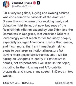 Good first step but need to force those institutions that have been buying up single family homes over the last 5 years to divest them over a 3-4 year period. Makes more homes available and puts pressure on prices to make them more affordable.