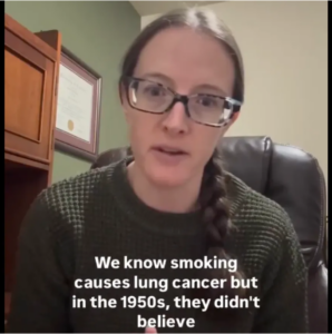 CLIP: Dr. Brittany Todd neatly compares the early days of tobacco-cancer research to ‘anti-vaxx’ research today (2:53).