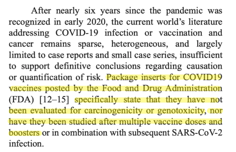 It is devilishly hard to pick, but possibly the most unsettling part wasn’t the hypotheses about immune dysregulation, spike protein persistence, or DNA contaminants— it was the authors’ blunt admission that covid vaccines were never evaluated for carcinogenicity, genotoxicity, or multi-dose long-term effects at all.