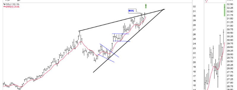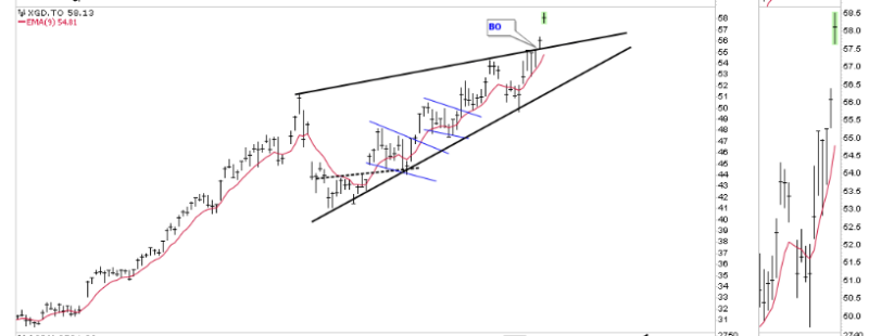 This morning is the day I’ve been waiting for. The October 16th rising wedge is now a confirmed bullish rising wedge. Whenever you see a massive breakout gap above an important trend line you’ve been following that’s your confirmation signal.