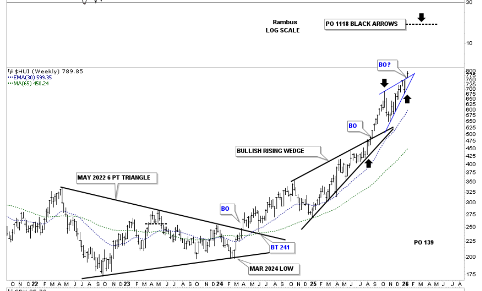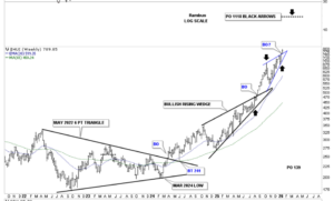 This weekly combo chart now becomes the most important chart to keep a close eye on. I added the minimum price objectives several weeks ago, as shown by the black arrows, which is the impulse method. We know a bullish rising wedge is one of the most bullish chart patterns in Chartology, next to the bullish expanding falling wedge. Now, we have two bullish rising wedges, with one forming on top of the previous one. All the best…Rambus
