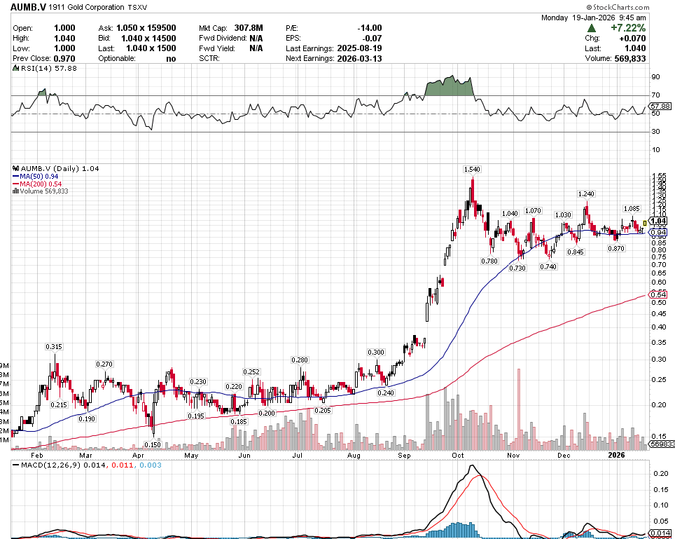 This stock was super hot into October 2025, and has pulled back and has been consolidating ever since. Good story with potential production in 2027. Do your own DD, but I think it’s pretty close to being done with sideways, and will take off soon if gold continues it’s advance from here. Notice the ever so subtle higher lows since November. I own it…do you want to?