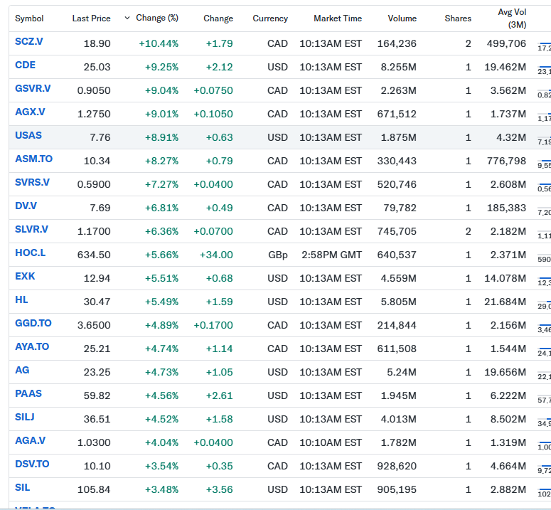 This is a list of Don Durrett’s silver stocks that he projected to 2x to 5x a while back…do yourself a favor and follow and read his stuff. Great junior mining resource…you can buy me a beer when you make money.