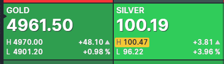 UPDATE 10:48 AM EST JAN 23 2026…….BOTH METALS ARE ~ 1% FROM THE FINISH LINES