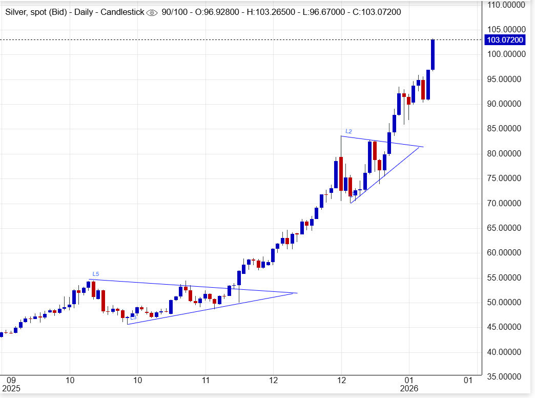 Yes, silver wins by a hair, but anyone holding any form of silver and gold is winning big this week. Astonishing, really. Unbelievable. Never dreamed there would be a week like this one.
