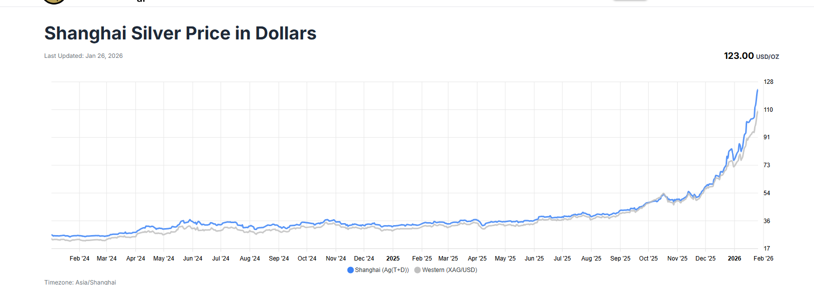 Shanghai setting the price ladies and gents…when will these 2 equal each other? When the Comex has no registered silver left…