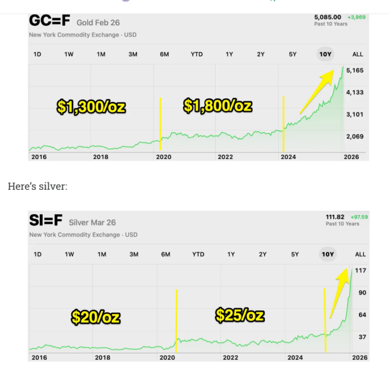 — and then the prices of gold and silver launched like SpaceX rockets.