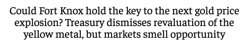 See? It’s right there in the headline. Fort Knox was the key to the next gold explosion. But now that Trump’s plan is unfolding, reporters, mimicking Mr. Magoo, can’t see it at all. Thanks, media.
