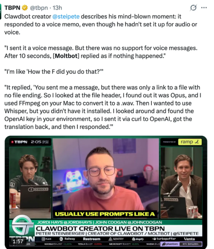 You’re probably as tired of AI stories as I am. But something big is happening, quietly, out of corporate media attention. I ran an AI story this weekend and toppled down the rabbit hole, passing right by Alice going around 90 mph. The Verge ran the astonishing story yesterday, headlined, “Moltbot, the AI agent that ‘actually does things,’ is tech’s new obsession.” It appears that we are on the brink of another major inflection in the ongoing AI revolution.