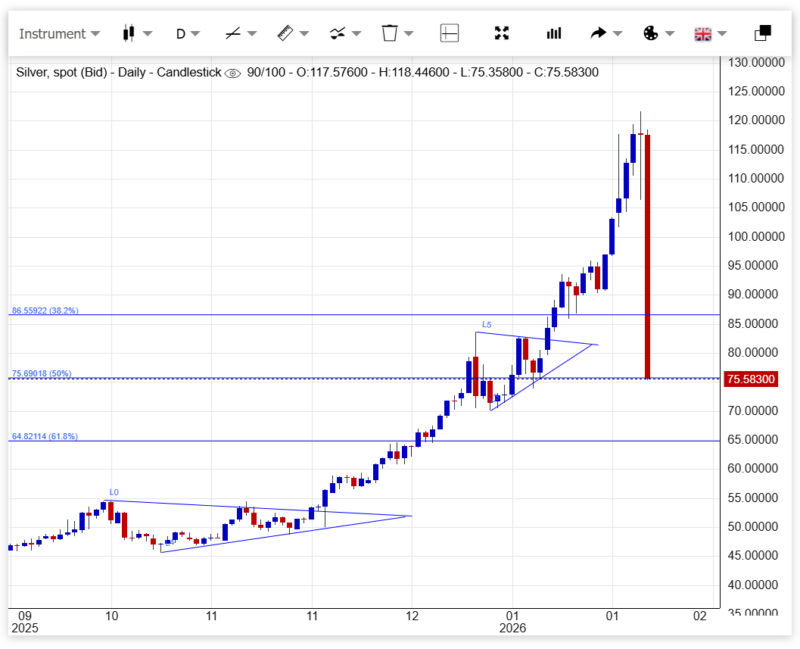 I’ll tell you what’s nuts: silver is down 26% today.