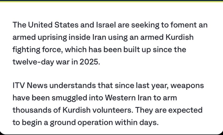 Another proxy war — hoping that it will stay confined within the country of Iran — and the Kurdish will provide the ground troops mandatory to effect regime change.