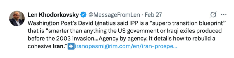 Pahlavi’s Iran Prosperity Project is the same idea as Project 2025, in miniature. “Capable individuals” are already identified, both inside and outside Iran. Governance frameworks are drafted. Institutional reforms are sequenced. The whole 180-day playbook has been pre-written.
