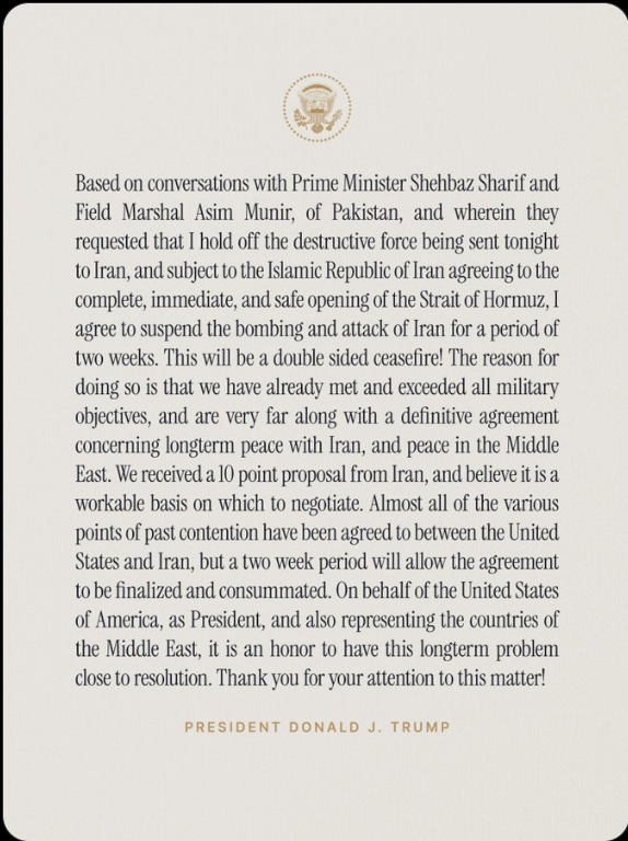 Israel is part of the two-week ceasefire Trump agreed to shortly before his deadline Per CN