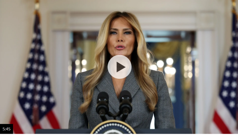 The First Lady read a prepared statement in which she completely denied any connection with Jeffrey Epstein, including the widely circulated claim (by Democrats) that Epstein originally introduced Melania to the President. “My attorneys and I have fought these baseless lies with success, and will continue to maintain my sound reputation without hesitation. To date, several individuals and organizations have been legally obligated to publicly apologize and retract their lies about me, including the Daily Beast, James Carville, and Harper Collins UK.”