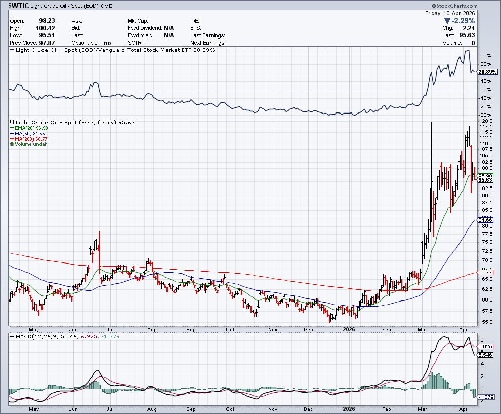 Oil has seen it’s highs and will be heading significantly lower, soon. It may not be heading back to $55, anytime soon, but a gap fill just below $70 is not a matter of IF, but how soon. It had already failed to take out the original spike high just under $120, and now with the bounce off the lack of a deal and the blockade, failing to reach even that lower secondary peak, the chart says down going forward. Could be either a grind lower or a fast collapse. The top for this cycle, is in.