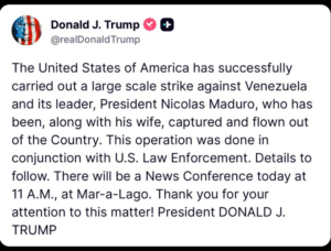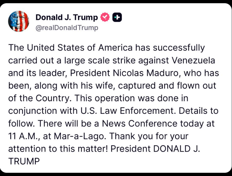While everything listed in the Venezuela post below may be true and important, in my opinion, the biggest and most important aspect is the election rigging based there for years. Now that the US has conducted an operation and has Maduro in custody and Trump is having a press conference at 11AM he better emphasize the election rigging. As important as all the rest may be, if the central theme isn’t about the election rigging, especially the US 2020 election, than it is more a distraction from everything else going on with the collapse of the dollar and the economy. If the media has to cover this capture of Maduro, Trump and the DOJ need to use the opportunity to highlight and stress everything that has occurred relating to election fraud.